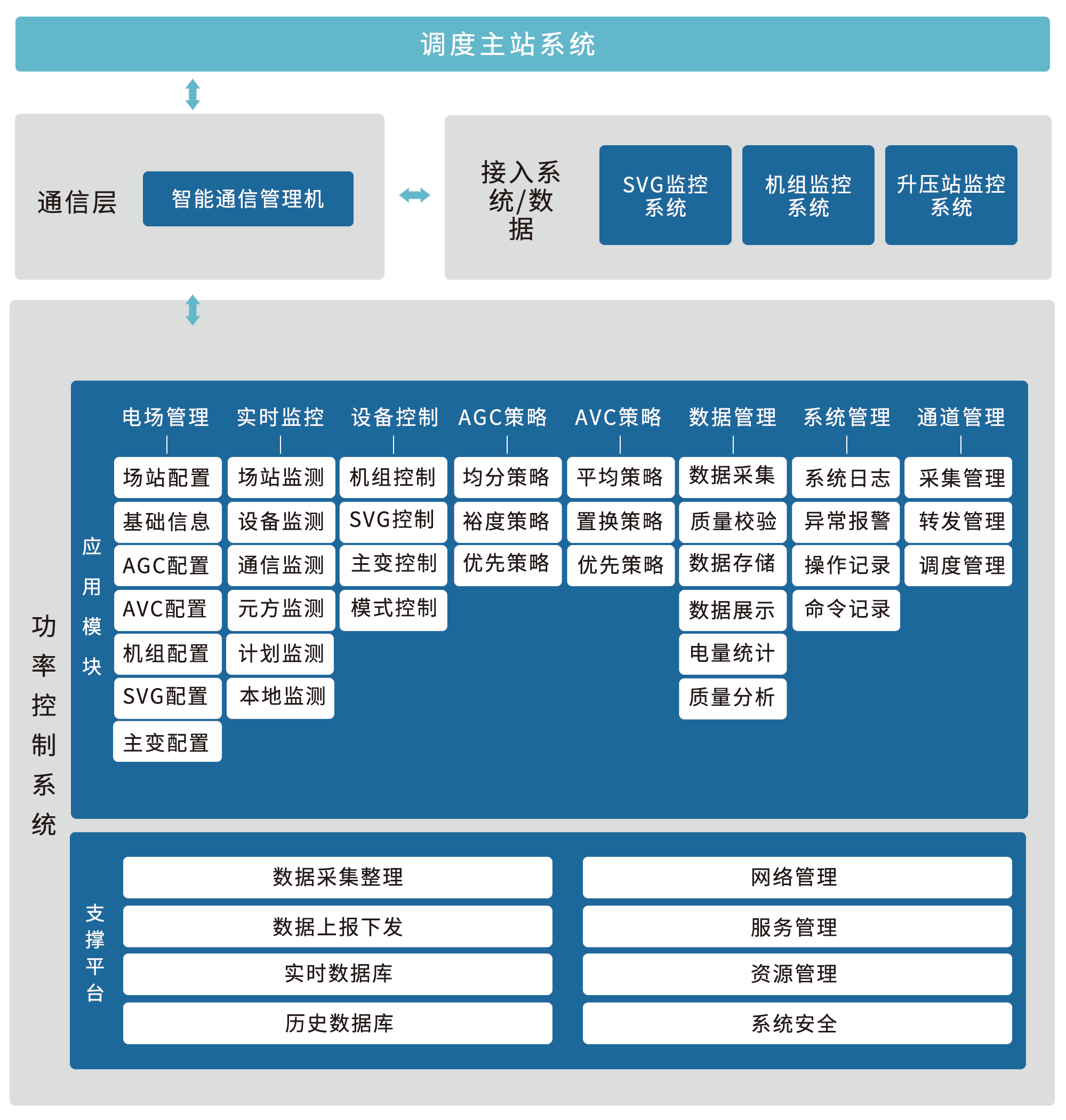 新能源AGC/AVC控制系统,对新能源发电进行控制,满足调度对电站的整体管控,以满足电网要求;