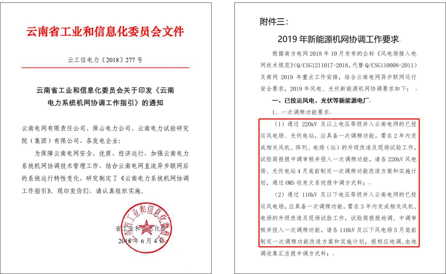 随后南网在2019年9月下发《关于进一步明确新能源场站一次调频管理要求的通知》,湖北在2019年11月下发《关于开展湖北电网省调电厂一次调频相关测试和改造工作的通知》。